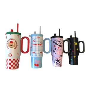 ステンレス鋼魔法瓶カップ 316 漫画ガールズストローカップポータブルハンドル大容量アイスカップ保冷と保温