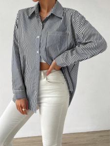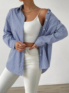 ヨーロッパとアメリカの貿易婦人服 2025 新しいアマゾンストライプカーディガントップルーズカジュアル長袖シャツ女性のための