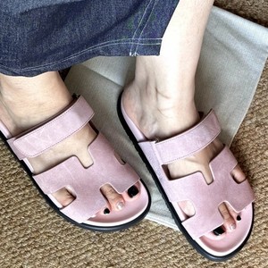 クラシックH二等伯の天井バージョン ベルクロストラップ付き 本革 厚底 カジュアル サマーアウターサンダル ピンク