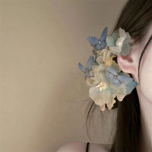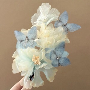 スーパーフェアリーバタフライフラワーヘアピン女性の新しい中国風レトロサイドカモノハシクリップハイエンドハーフタイヘアヘッドバンド
