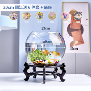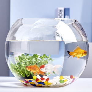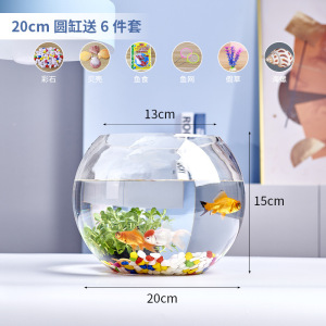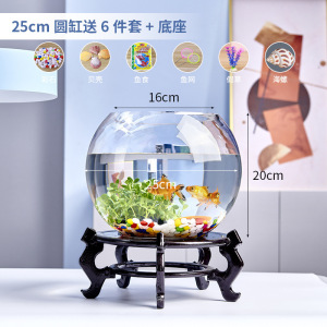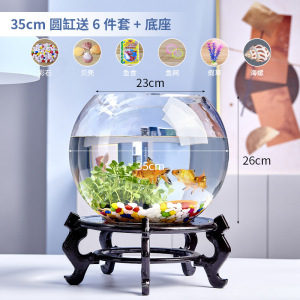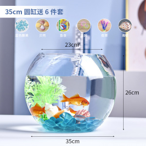 办公室小鱼缸加厚透明玻璃乌龟缸客厅家用桌面圆形迷你小型金鱼缸