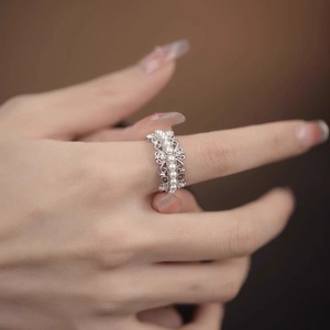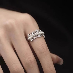 女性用スクエアパールレースクラウンリング s925 スターリングシルバーリングハイエンドライトラグジュアリーファッションパーソナライズされたオープン人差し指