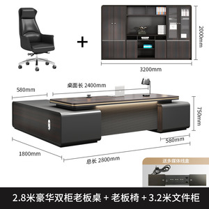 【モダンライトラグジュアリー】2.8m高級ダブルキャビネット社長テーブル+社長チェア+ファイルキャビネット3.2m個
