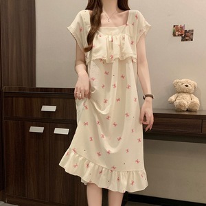 女性のためのナイトガウン夏半袖クラウドコットンラブスウィートガール 2025 新しい夏薄い女性のパジャマドレス
