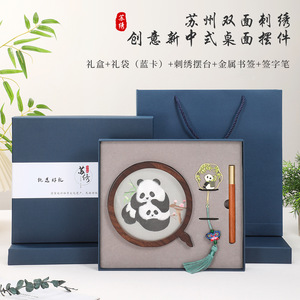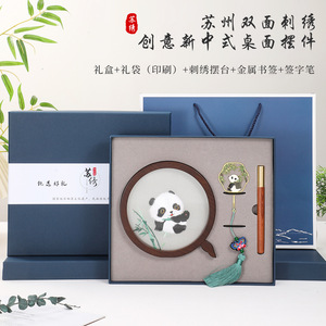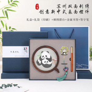 蘇州刺繍手作り両面刺繍クルミパンダ小さな装飾品包装箱無形文化遺産刺繍ギフト包装空箱