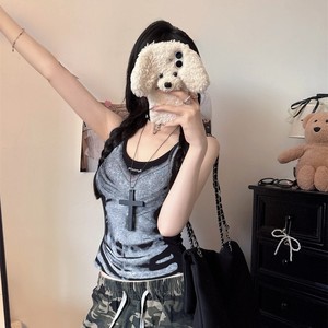 6996 アメリカンホットガールストリートコントラストプリントデザインキャミソール女性の夏の新しいスリムショートトップ