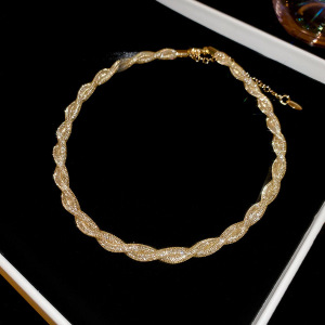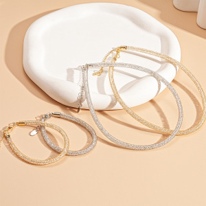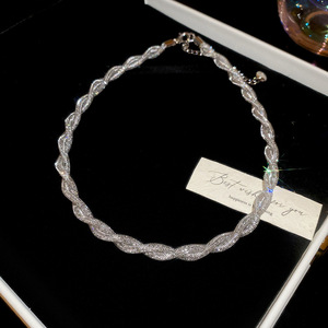 ヨーロッパとアメリカのジルコン巻きメッシュ幾何学的なサークル鎖骨ネックレスファッショナブルなニッチ気質ハイエンドネックレスセット女性用