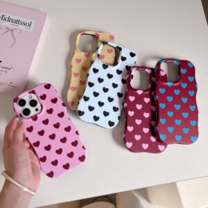 韓国風の小さなハートがいっぱいのiPhone16pro max、Apple 17、15/14対応のマットウェーブシェル型スマホケース