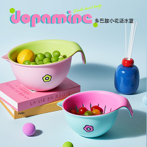 持ち手付きプラスチック製デザイン性のある二層式キッチンフルーツ洗い・野菜準備用ドーパミン水切りかご