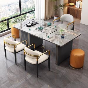 轻奢岩板茶桌一体一整套现代简约家用阳台办公多功能泡茶茶台椅