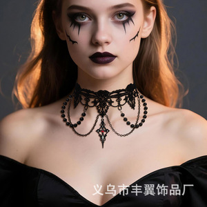 ヨーロッパとアメリカのロリータロリータゴシックレースパールネックレスニッチレトロ鎖骨チェーンハロウィンチョーカー