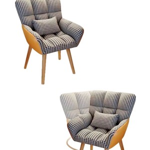 【無垢材脚回転】ラテックス千鳥格子綿麻バックオレンジスタイル