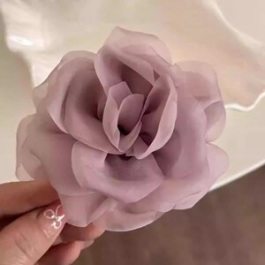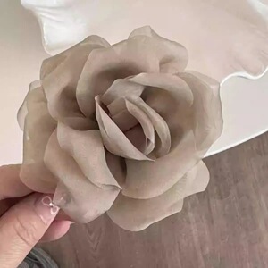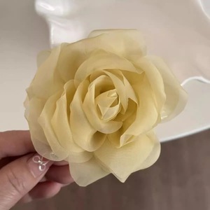 轻纱黄玫瑰发夹网纱玫瑰花朵抓夹高级感气质盘发鲨鱼夹发卡发饰女