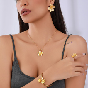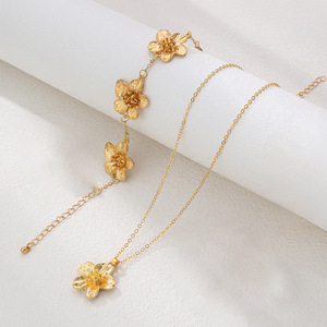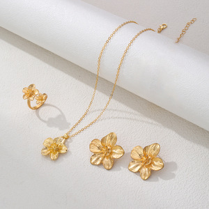 Sheinクロスボーダーホットスタイルレトロゴールデンフラワーペンダントネックレスブレスレットリングイヤリングハイエンドジュエリーセット