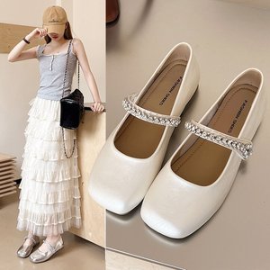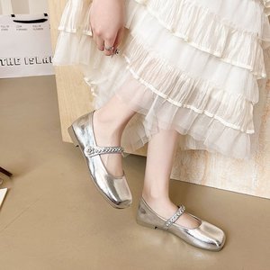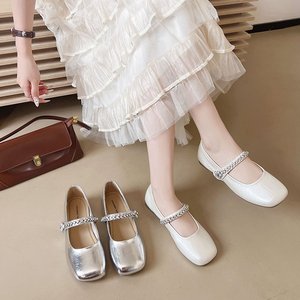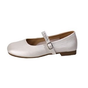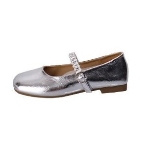 シープスキンバージョン〜本革フラットシルバーラインストーンワンストラップメリージェーンシューズフェアリースタイルパンプスイブニングシューズ