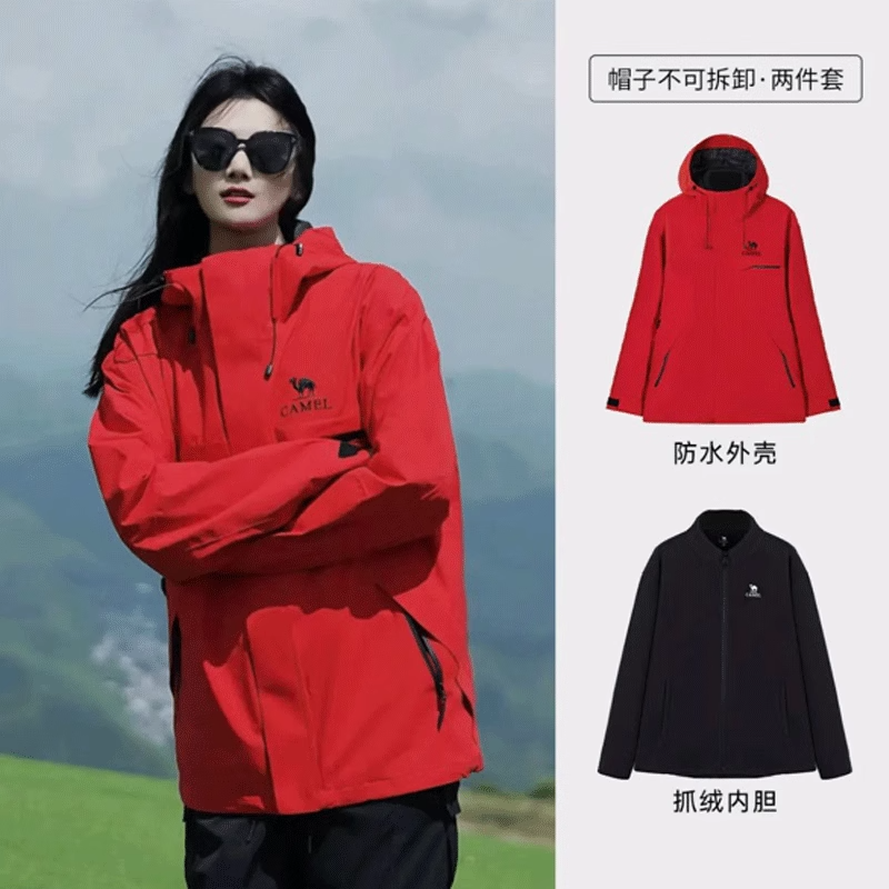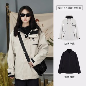 キャメルジャケットメンズジャケット新しいスリーインワン取り外し可能なツーピース防風防水アウトドア登山服女性用