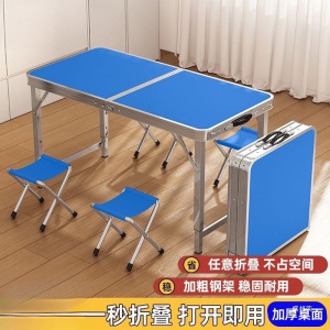 +アップグレードされた耐荷重キング+角チューブブルーシングルテーブル(+スツール4脚)+