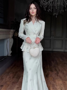 2025ヨーロッパとアメリカの新しいスタイルのアマゾン貿易クロスボーダー長袖スーツボタンVネック気質プリーツロングスカートスーツ
