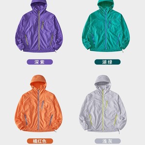 トレンディな夏のマウンテンスタイルの男性と女性用のアウトドアライトジャケット、フード付き日焼け止め服、紫外線防止カップル旅行用スキン服