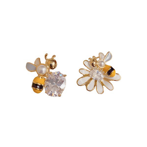 夏の新しいスタイルのファッショナブルなデザインの非対称デイジービーイヤリング s925 シルバー針甘くて多用途なイヤリング