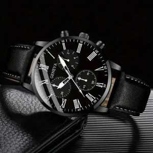 ジュネーブトレンディなメンズクロスボーダーベルトウォッチ超薄型シンプルなビジネス腕時計セットメンズドロップシッピング