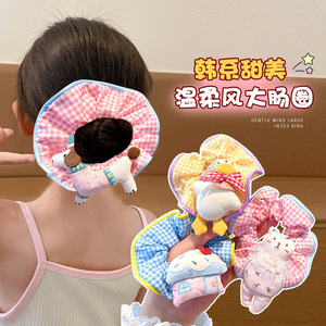 2025 新しい女の子漫画子犬大腸リング女の赤ちゃんかわいいチェック柄ヘアリング女の子多用途ボールヘアアクセサリー