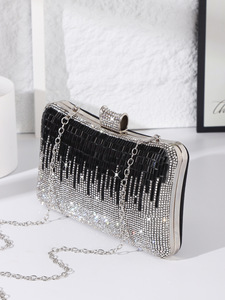 クロスボーダー新作イブニングバッグ、白黒ストライプ縦型クロスボディバッグ、欧米風ファッション、ダイヤモンド付き大型ピローハンドバッグ