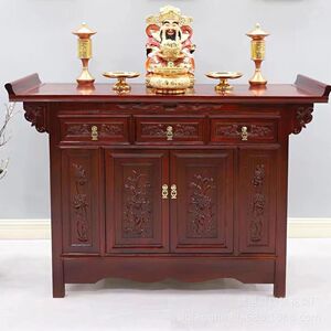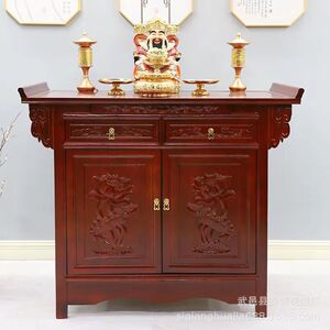 仏壇、家庭用仏壇、新しい中国風の無垢材のモダンな中央仏壇、神テーブルキャビネット、富の神、田舎の祭壇テーブル
