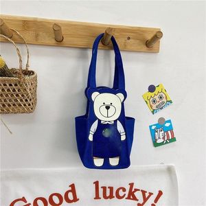 新しい厚みのあるキャンバスのかわいいエプロン、クマのウォーターカップバッグ、ミルクティーカバー、小さな小銭入れ、携帯電話バッグ