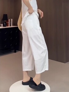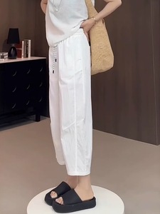 2024 夏薄型プラスサイズの女性のハイウエスト 8 点カジュアルハーレムパンツ梨型ボディ痩身ストレートお父さんパンツ