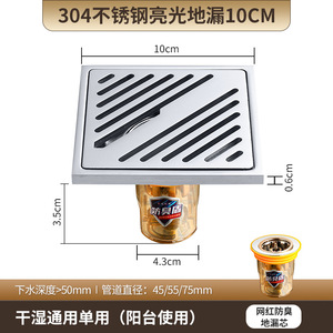 光沢のある 304 ステンレス鋼の床排水管全銅コア消臭剤浴室浴室シャワー下水道洗濯機ユニバーサル