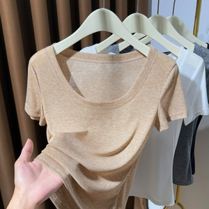 ヨーロッパの薄い大きなラウンドネックウエストスリム半袖レディース微透けボトムシャツサマートップ純粋な欲望ホットガールTシャツ