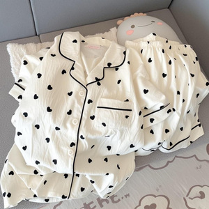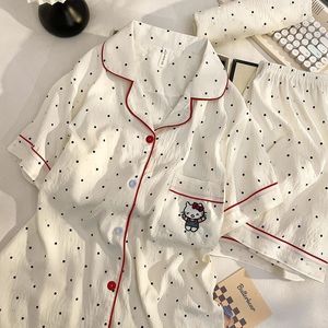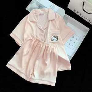 ピンク KT 猫パジャマ夏の女性の純粋な綿半袖ショーツ甘い雲綿夏は家の服セットの外で着用できます