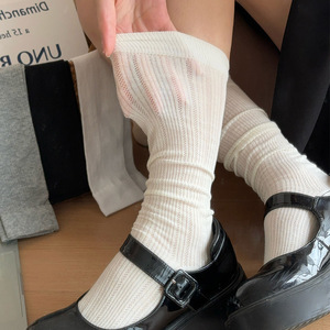 バレエ風ソックス レディース 夏 薄手 ホワイト パイルソックス ミュウミッドカーフソックス ロングソックス 夏用カーフソックス