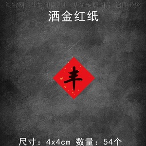 Feng 4x4cm - 金と赤の紙にスプレーされたステッカー 54 枚