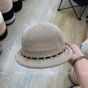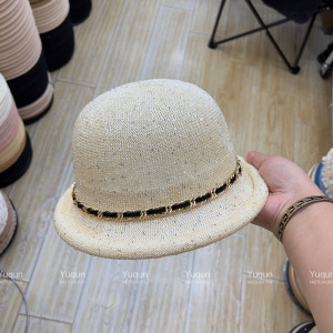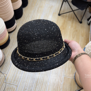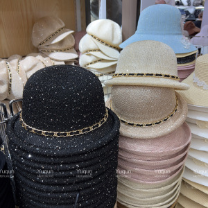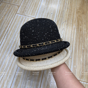女性用夏の薄いスパンコールドームハット、カーリング英国レトロフェイスハット、中空通気性フィッシャーマンハット