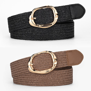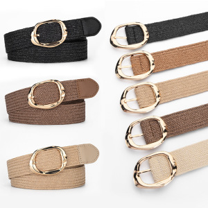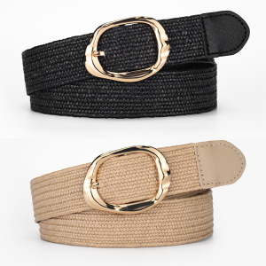 弾性織りPPわら弾性ベルトファッショナブルなボヘミアンスタイルラウンドピンバックルレディースガードベルト多用途スカート