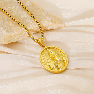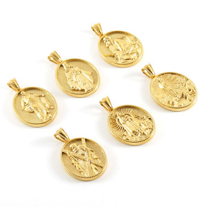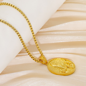クロスボーダーヨーロッパとアメリカのファッションステンレス鋼ラウンドペンダント 18 K ゴールド誇張聖母マリアネックレス男性と女性の卸売
