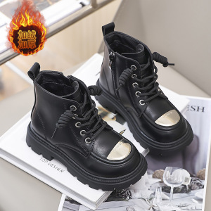 英伦风儿童马丁靴2025冬季新款女童加绒保暖棉靴学生黑色休闲潮靴