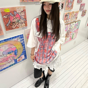 スポット韓国ニッチトレンディブランドソフトかわいいセーラー襟ガールかわいい漫画プリント落書き半袖Tシャツレディーストップス