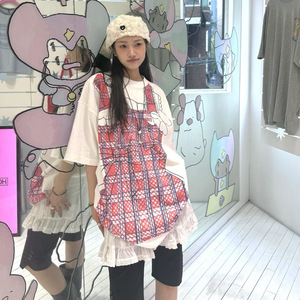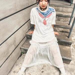 セーラーカラー落書き半袖(チェック柄ロングスカート)