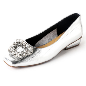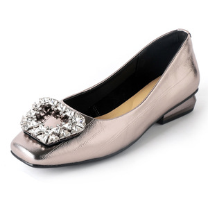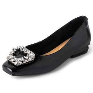 レトロ浅口シングルシューズ女性のための 25 春と秋の新ファッションスクエアバックルラインストーン厚いヒール快適なフラットシューズ通勤作業靴