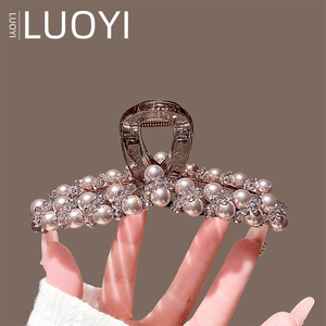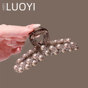 2025 新しいシンプルなクリスタルパールクリップ女性のハイエンドヘアクリップ後頭部ヘアシャーククリップヘアピン