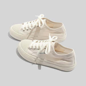 ベルキャンバスシューズ女性のための 2025 夏の新フラットファッションカジュアルシューズニッチシングルシューズ多用途白靴 6892