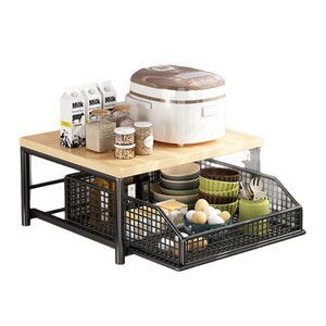 オーブン、炊飯器、エアフライヤー、電化製品、床置き収納ラック、キッチン電子レンジ収納ラック、引き出し付きカウンタートップ