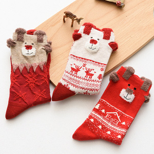 国境を越えた貿易秋と冬のクリスマスソックスサンタクロースギフトスノーフレークヘラジカかわいい漫画クリスマスミッドチューブソックス