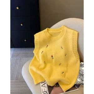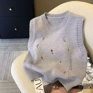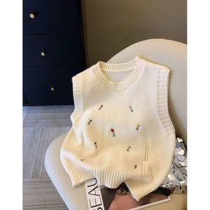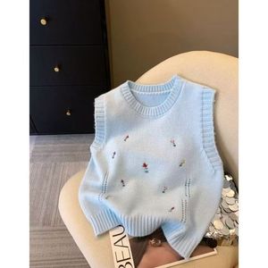 2025 ラウンドネックノースリーブスリムニットベストゆったりと早春の新しいベスト甘くてファッショナブルな女性のセーターベスト