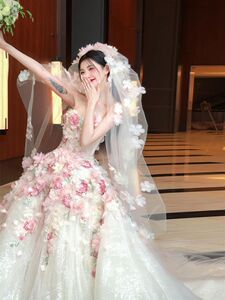法式主婚纱礼服新娘2025新款在逃公主豪华重工高级感出门纱