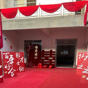 結婚式の庭の装飾、田舎の自作の家の庭の装飾、結婚式の門、長い結婚式の文字のカーテン、ランタンと滝