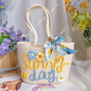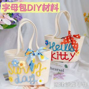 多巴胺手提篮手工粘贴diy材料包团建活动拍照道具字母草编包